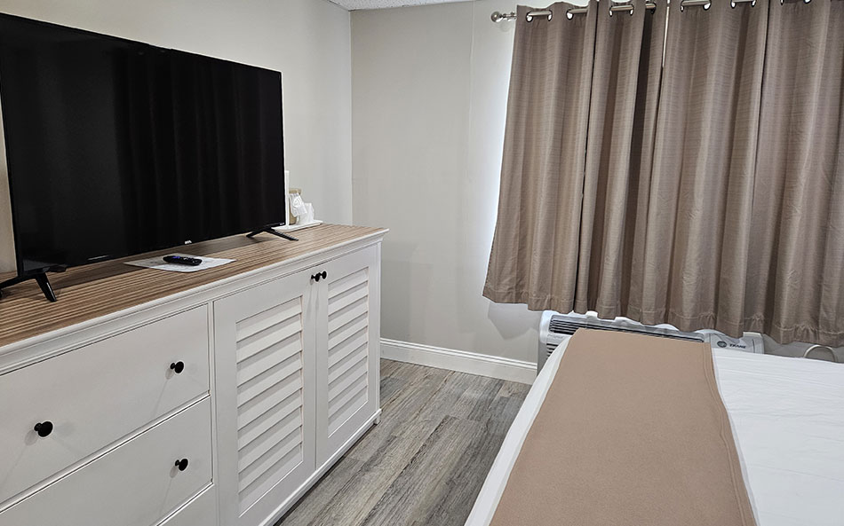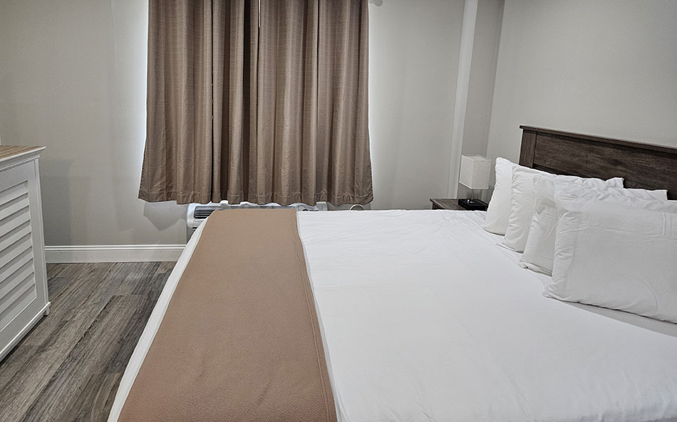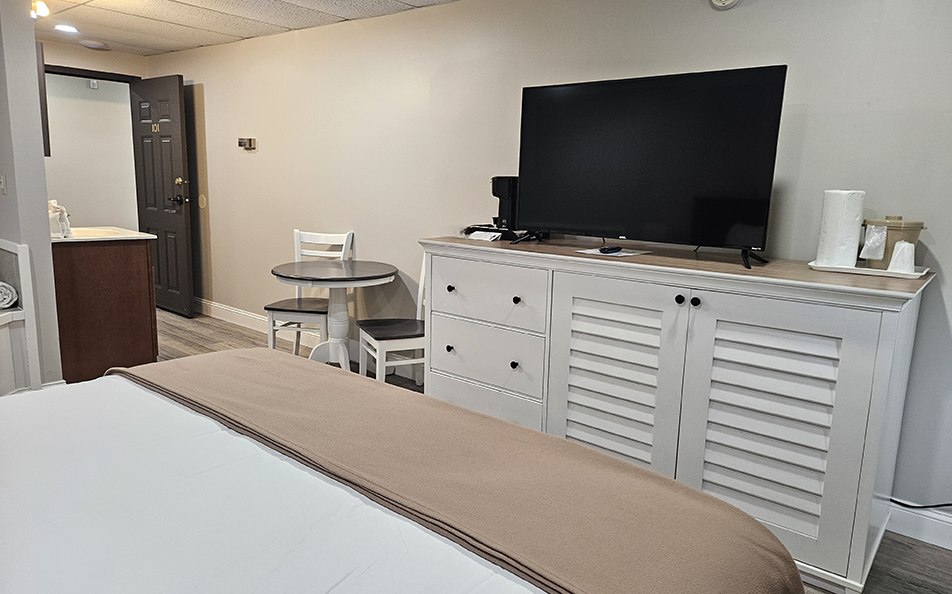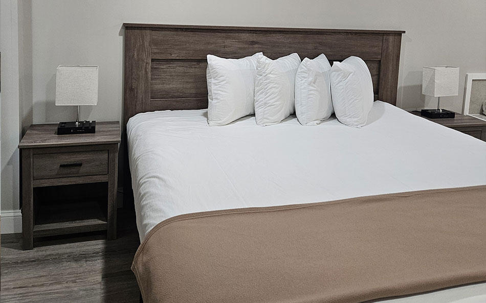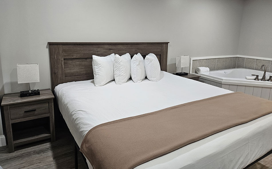 Our spacious non-smoking rooms have a comfortable king sized bed, flat screen cable TV, individual heat and air conditioning and small refrigerators. There is a microwave for guest use in the motel office. The rooms are always clean and up to our guests standards.